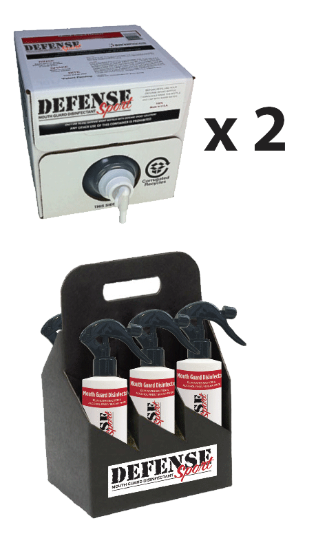 This package includes enough product to refill your (6) 8 oz. spray bottles five times. The 1 gallon containers with their easy to use spouts make it simple to fill bottles for practices or game day. An economical choice - you get $480.00 worth of product for $300.00! The handy caddy makes it easy to add mouth guard disinfecting to the sideline routine. Let us help you keep your athletes healthy so they can - Play Hard...Play Clean!